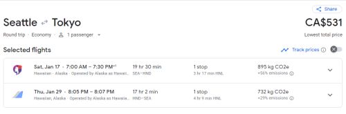 Google Flights: Seattle to Tokyo, Japan