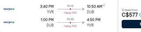 Google Flights: Vancouver to Dublin, Ireland
