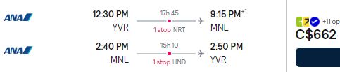 ANA has dropped the price of their flights from Vancouver to Manila, Philippines down to $662 CAD roundtrip including taxes.