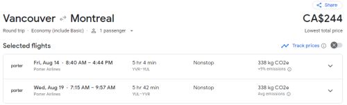 Google Flights: Vancouver to Montreal