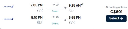 Vancouver to Reykjavik, Iceland - $587 CAD roundtrip including taxes [Nonstop Flights]
